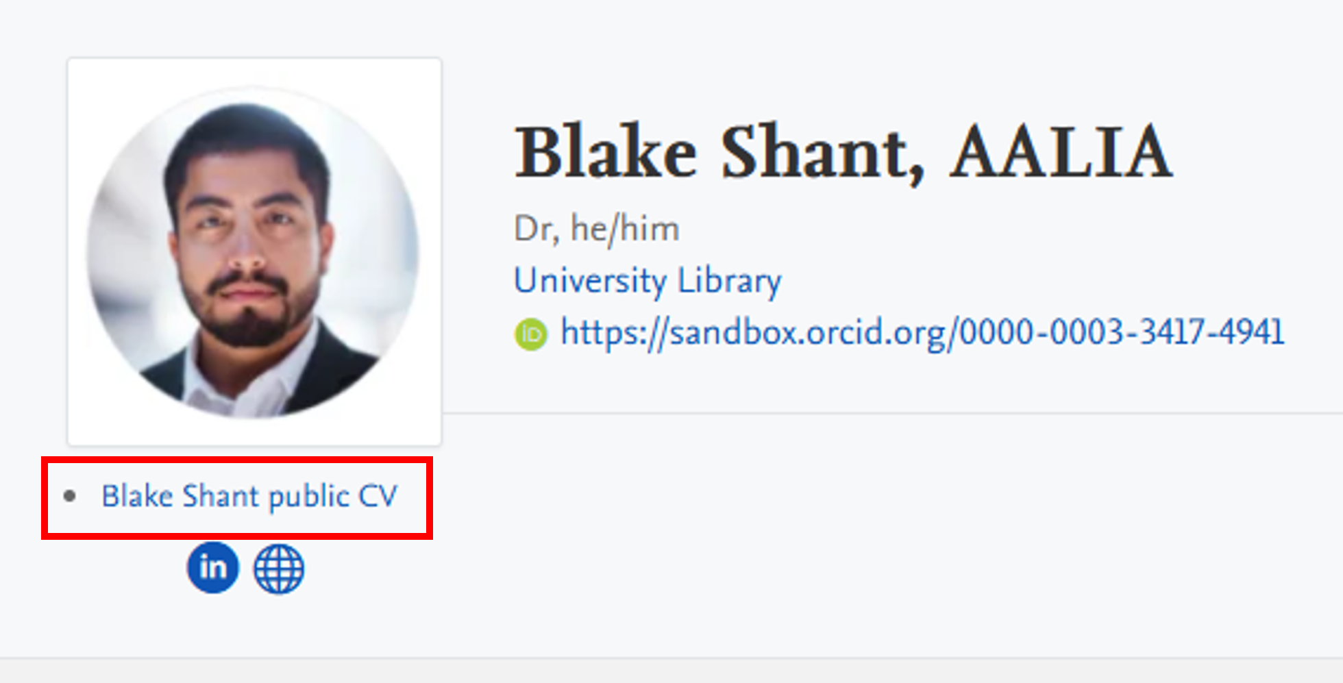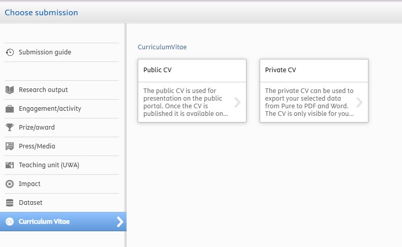 The contents of your UWA Profile can be used to create a Curriculum Vitae (CV). The CV can be kept private or made available publicly on your Profile. CVs can be edited as desired and downloaded as either PDF or Word documents.